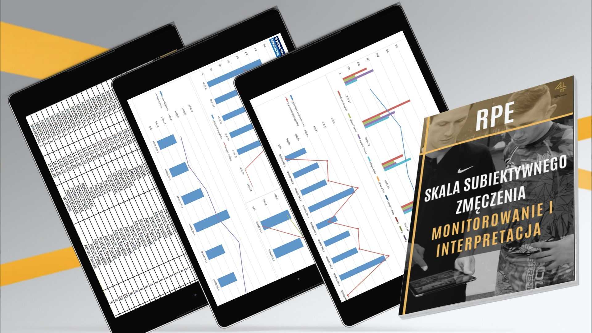 Zastosowanie skali RPE zyskuje na popularności, ponieważ jest szybkie, łatwe, nic nie kosztuje a dokładnie ocenia obciążenie wewnętrzne sportowca. Dzięki arkuszowi będziesz mógł szybko zapisywać wyniki zmęczenia dla całej drużyny i obserwować dzienne, tygodniowe oraz miesięczne obciążenie na stworzonych do tego wykresach. Szybki podgląd indywidualnych lub drużynowych wyników, zmiennych tygodniowych, monotonii czy ACWR, pozwoli Ci na sprawne zarządzanie wysiłkiem. Będziesz wiedział jak bardzo możesz zwiekszyć pracę u poszczególnych zawodników tak aby nie doprowadzić ich do nadmiernego przeciążenia.