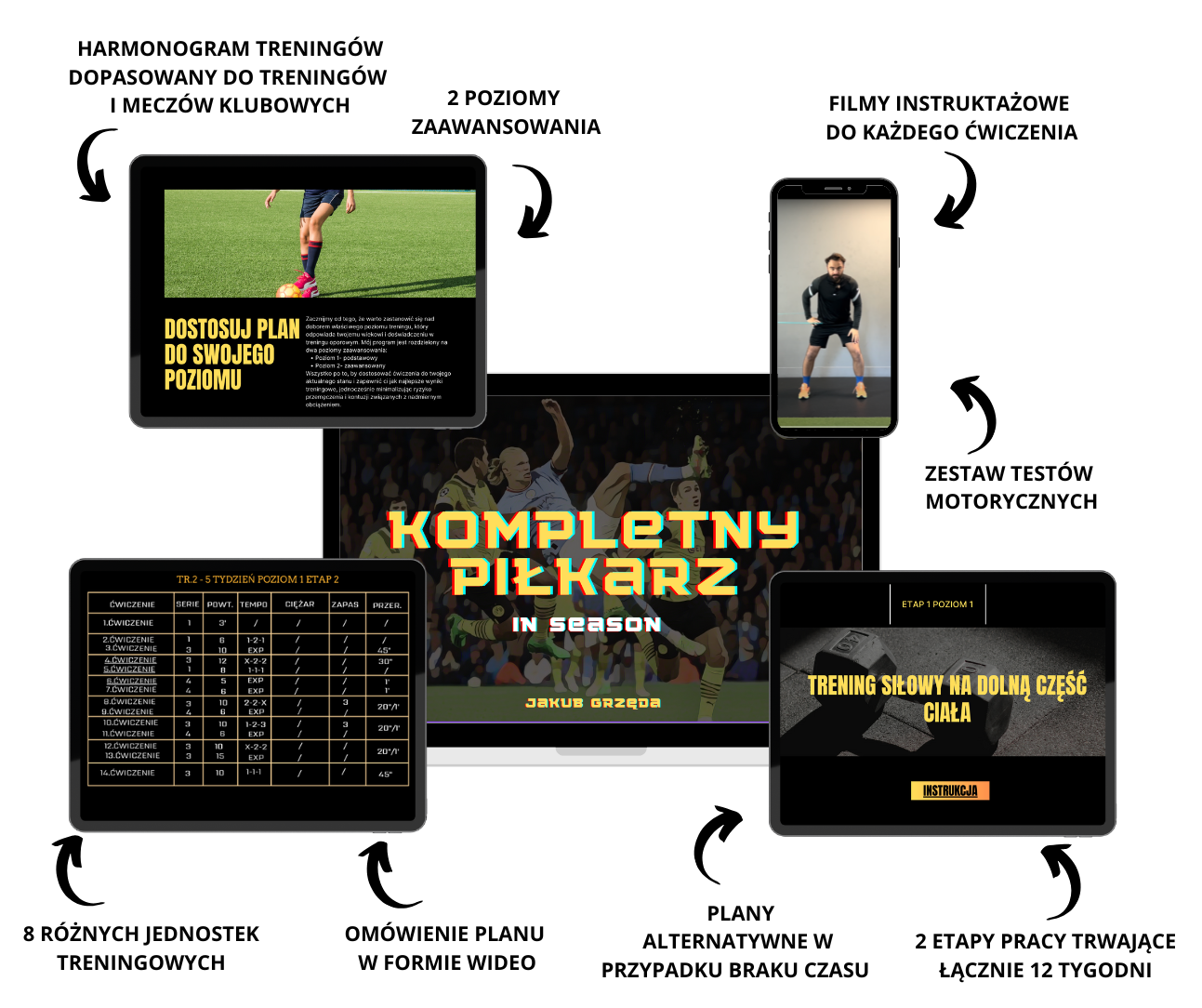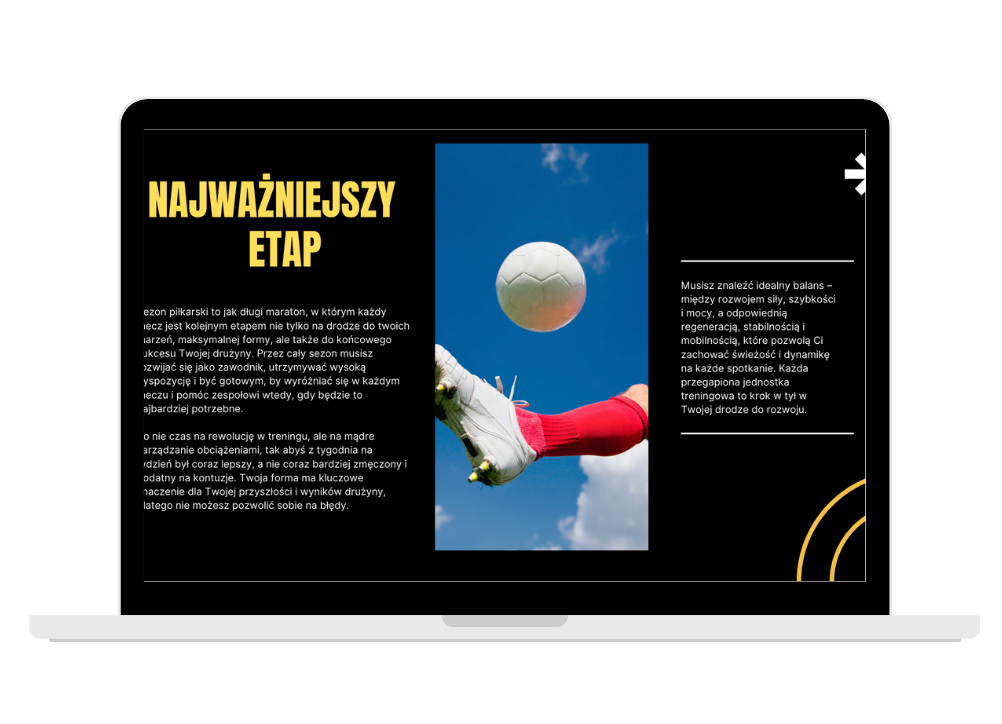 Dowiesz się, nad czym będziesz pracować na każdym etapie i jak dopasować treningi do swojego tygodnia , niezależnie od ilości treningów oraz meczów.