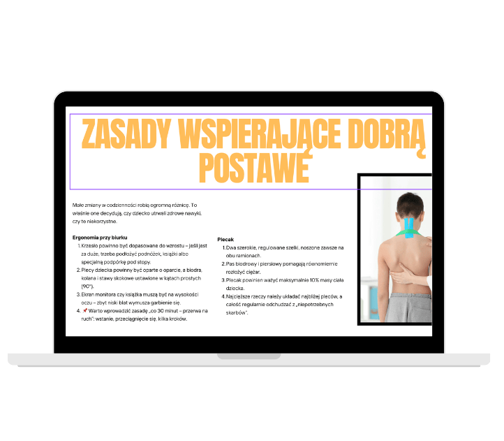 Głowa pochylona w przód obciąża kark i plecy, zwiększając napięcia mięśniowe i ryzyko bólów szyi.